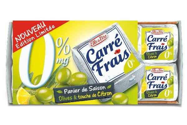 Avec les beaux jours, nos assiettes ont envie de fraîcheur et de légèreté. Carré Frais, ce fromage à tartiner d’Elle & Vire, amène cette touche d’originalité à vos entrées ou apéritifs. Sa recette authentique et inchangée depuis 1872, vous emmène sur le chemin de nouvelles saveurs avec leurs deux nouveaux produits : ail & fines herbes et olives & citron. À essayer d’urgence. 2,11 €, en GMS.